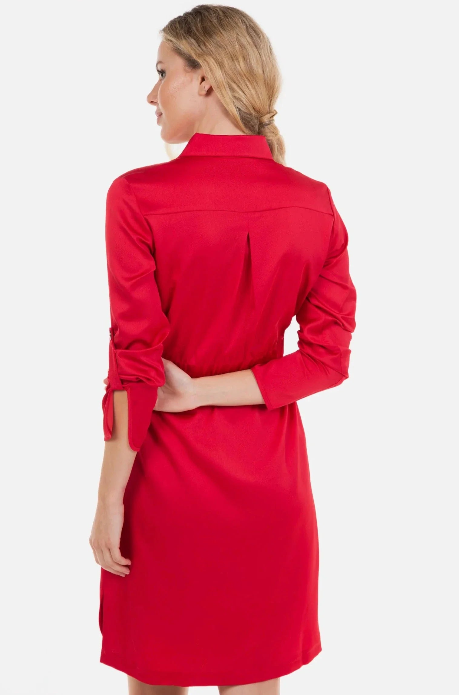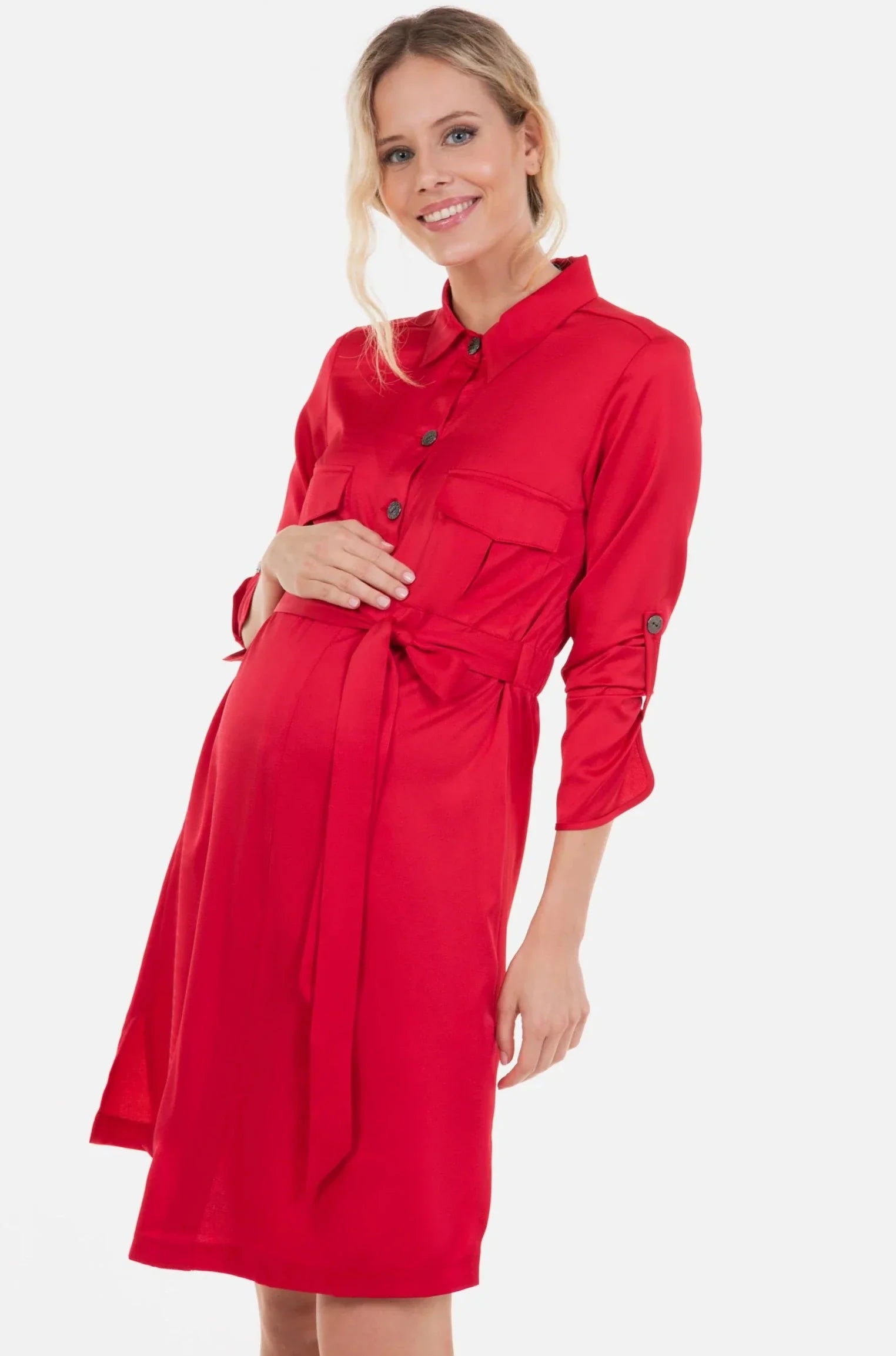 Γυαλιστερό φόρεμα εγκυμοσύνης και θηλασμού με γιακά σε κόκκινο