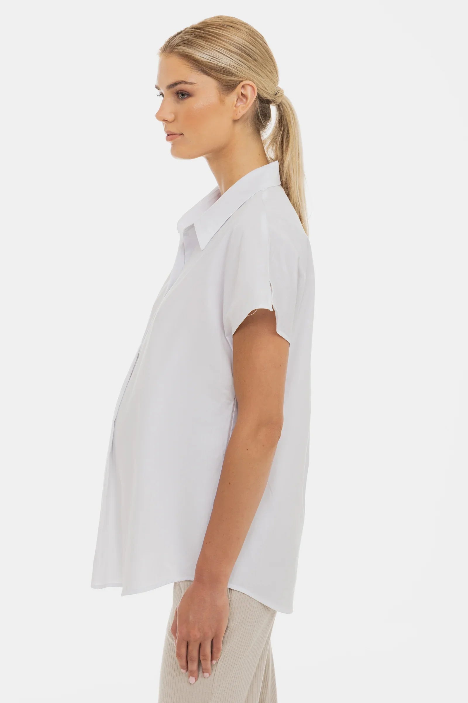 Καλοκαιρινό βαμβακερό πουκάμισο εγκυμοσύνης και θηλασμού – λευκό