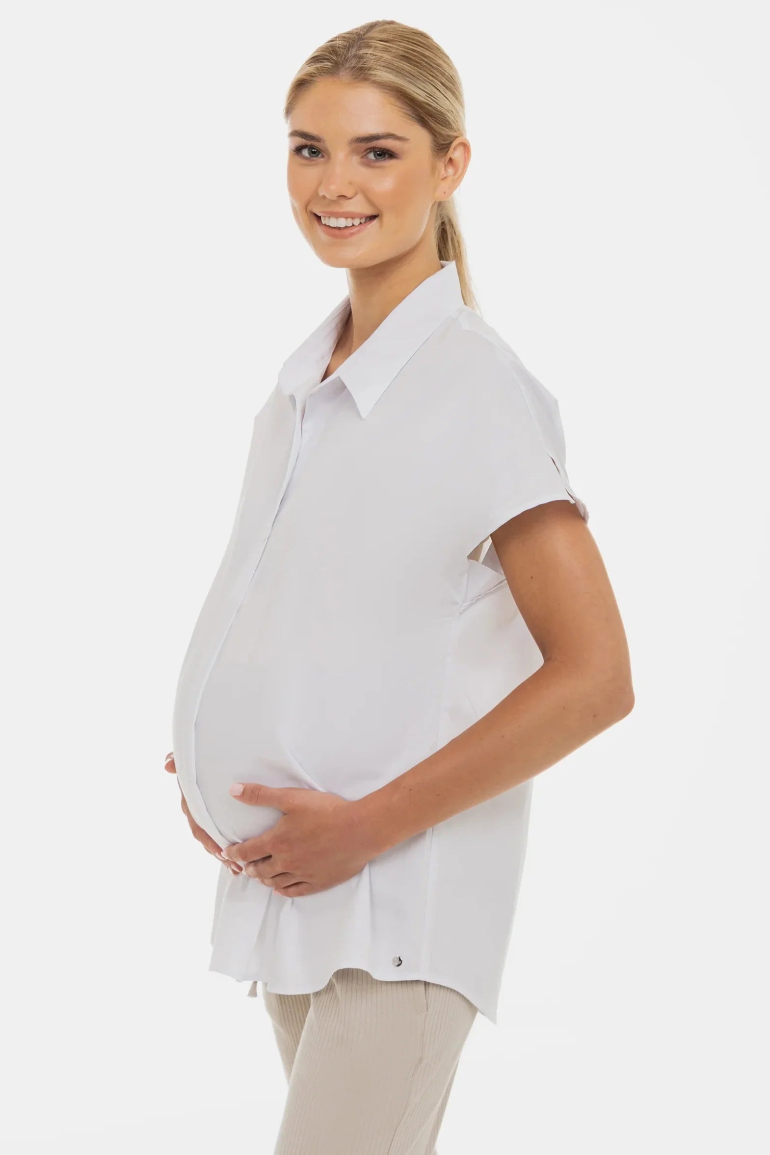 - Πουκάμισο εγκυμοσύνης και θηλασμού από 100% βαμβάκι σε λευκό