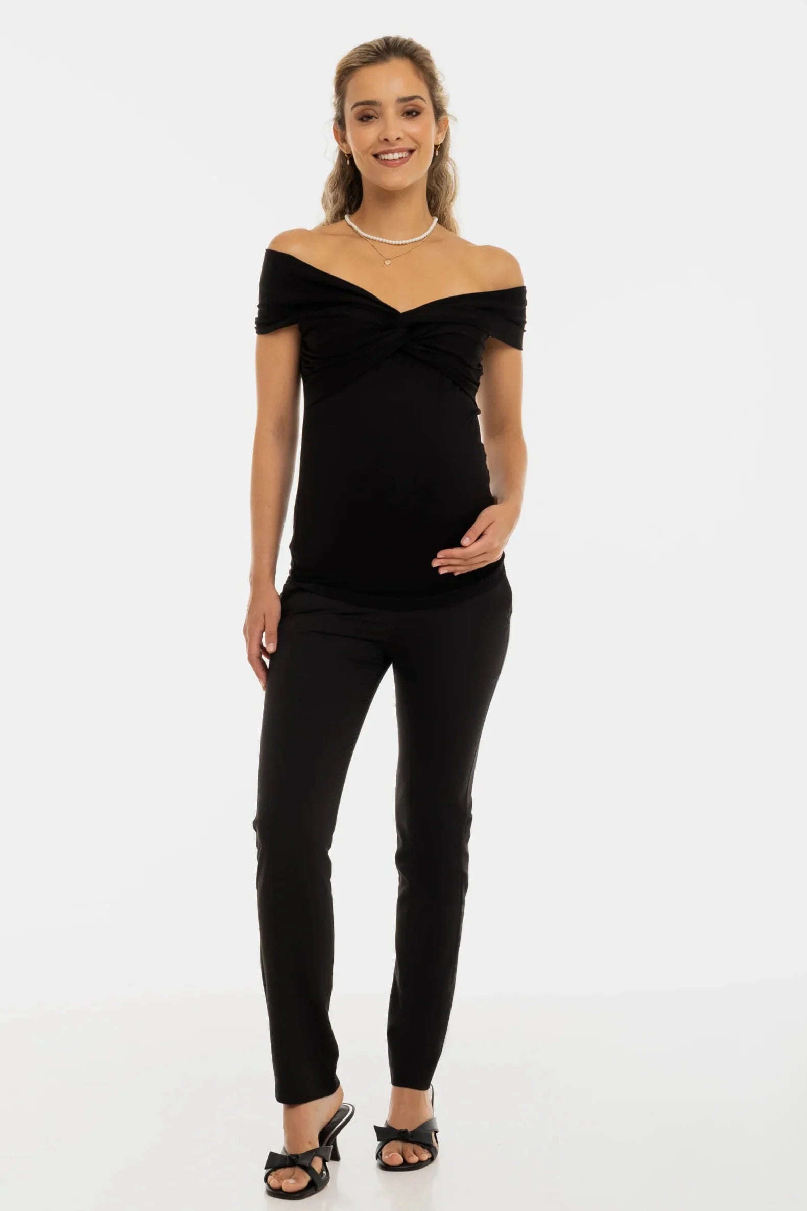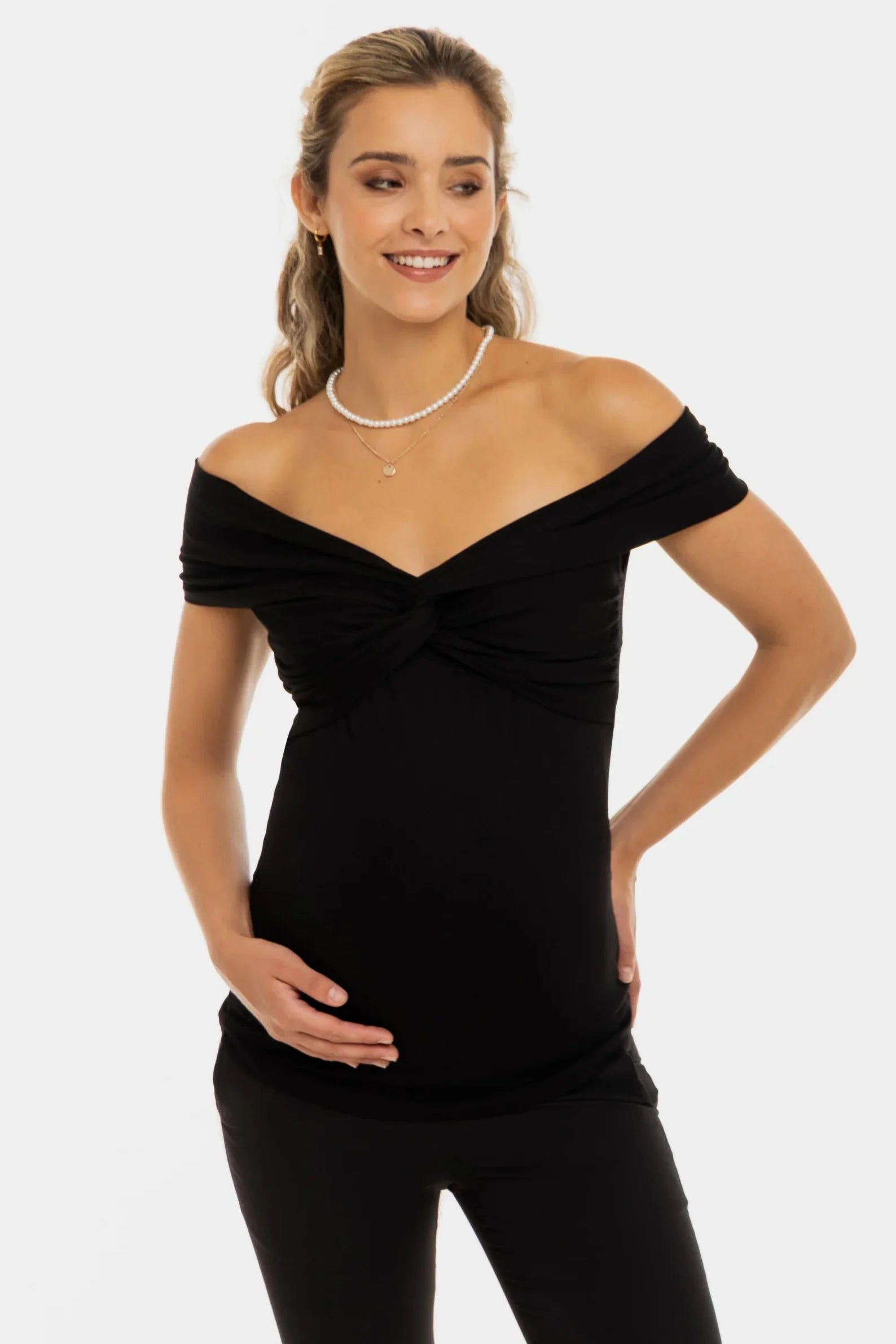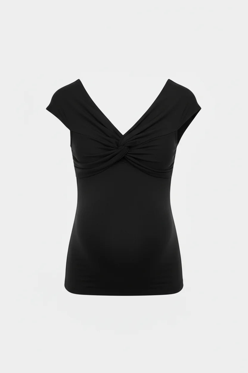 Κομψή μπλούζα εγκυμοσύνης με κόμπο - μαύρη
