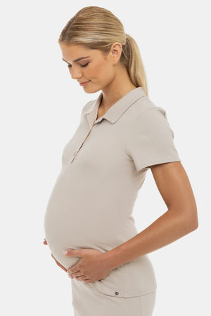 Ριπ βαμβακερή μπλούζα εγκυμοσύνης και θηλασμού - μπεζ