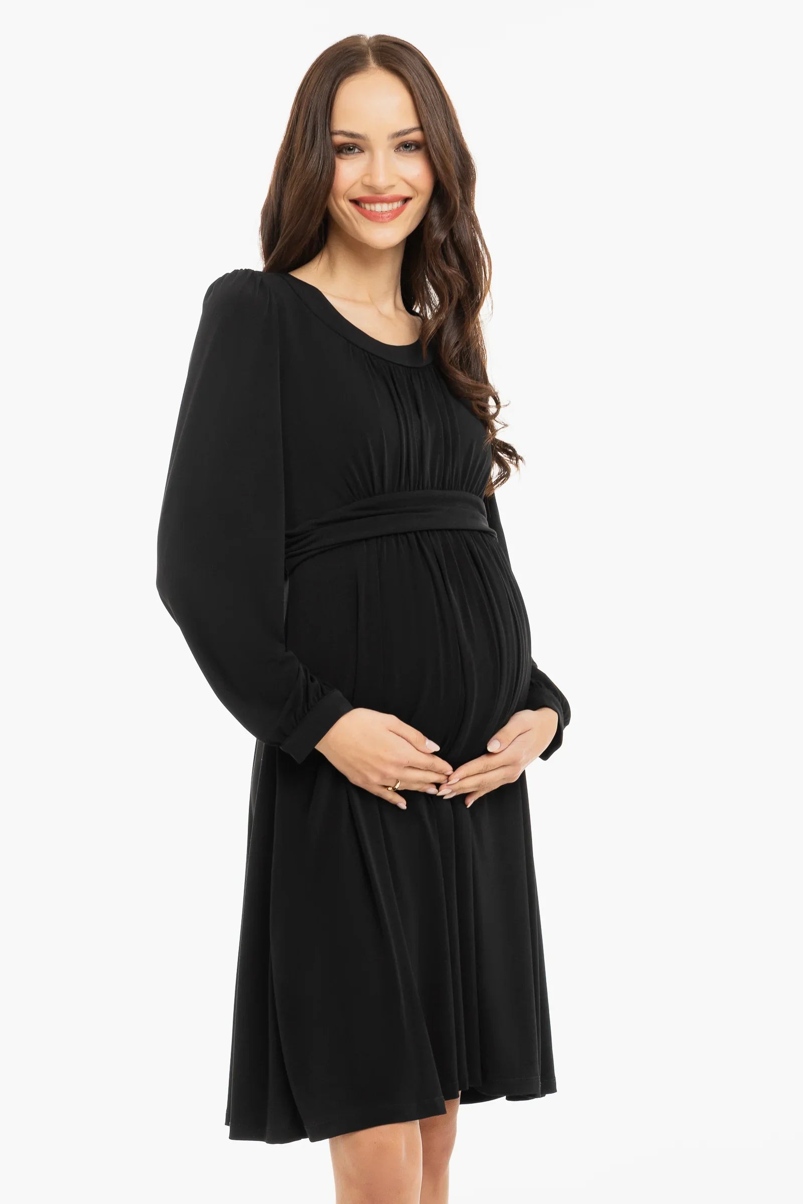 Κομψό φόρεμα εγκυμοσύνης με σούρες - μαύρο