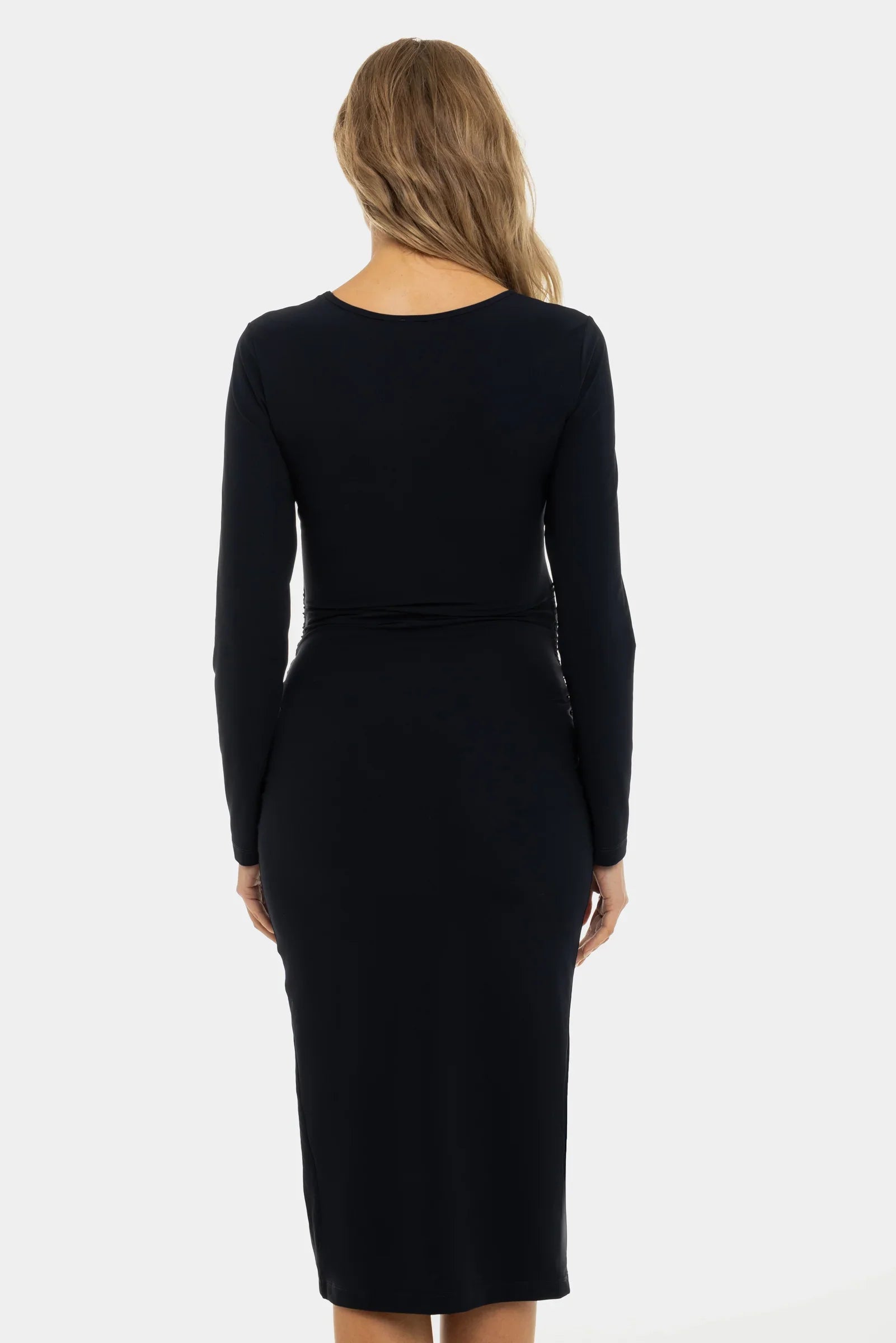 - Το φόρεμα είναι κατασκευασμένο από ελαστικό υλικό σε σκούρο μπλε