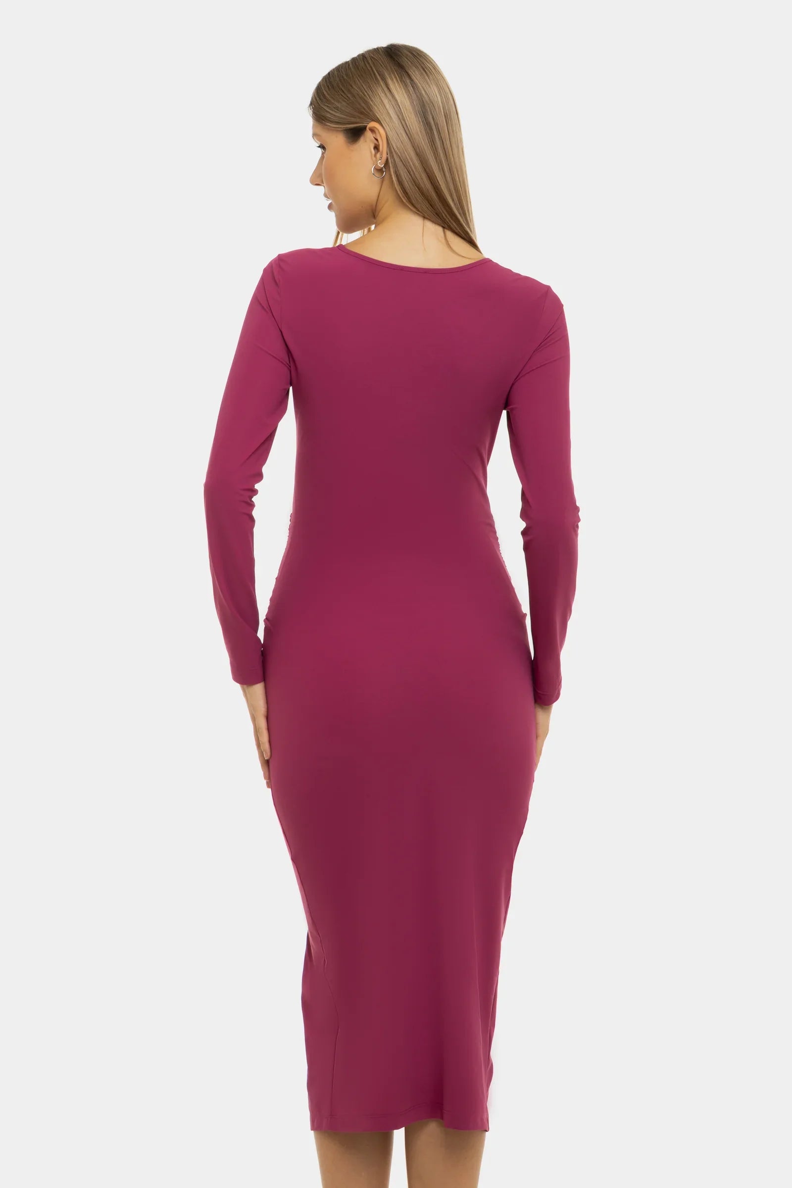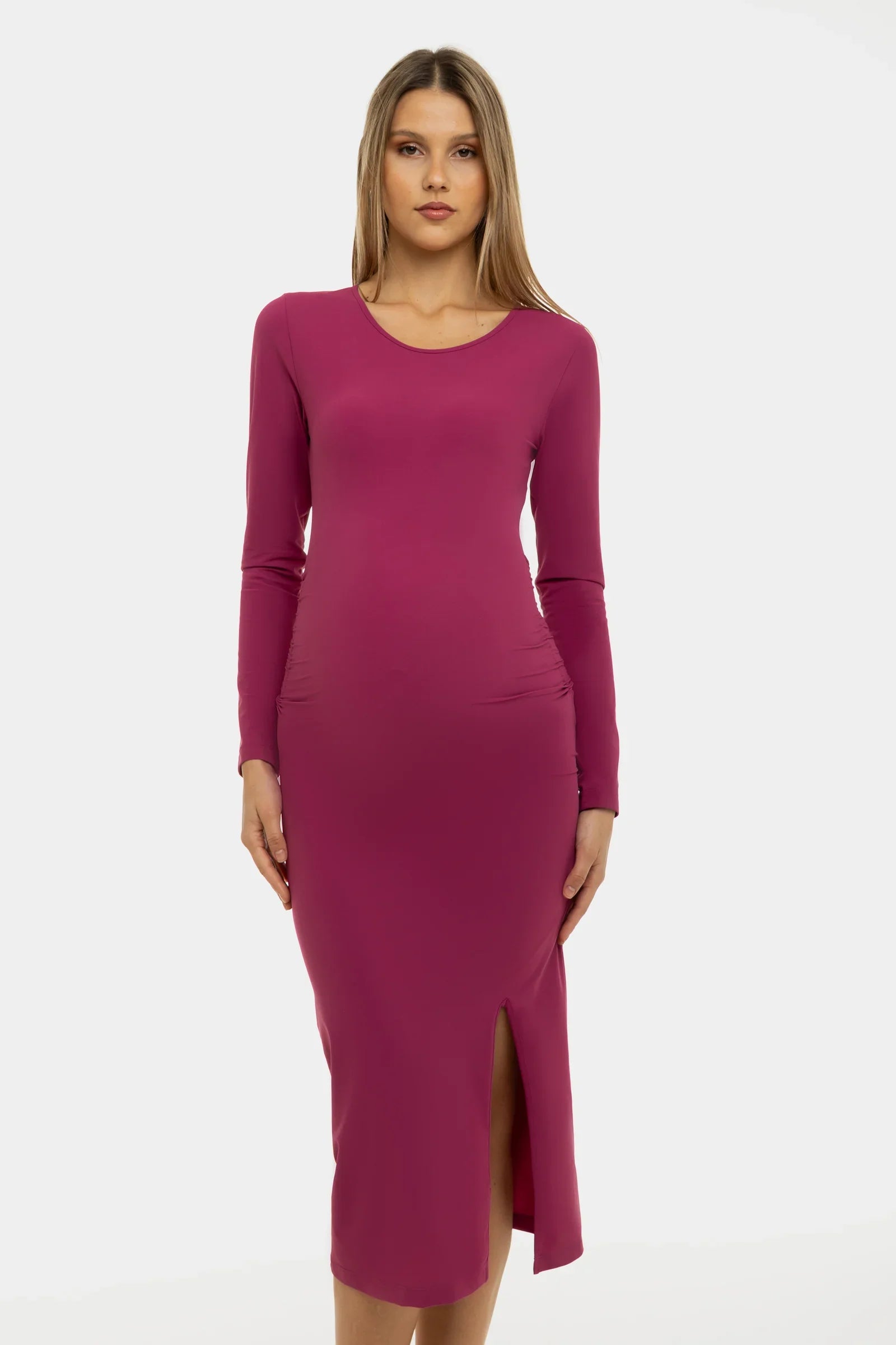 - Το φόρεμα είναι κατασκευασμένο από ελαστικό υλικό σε βατόμουρο μωβ