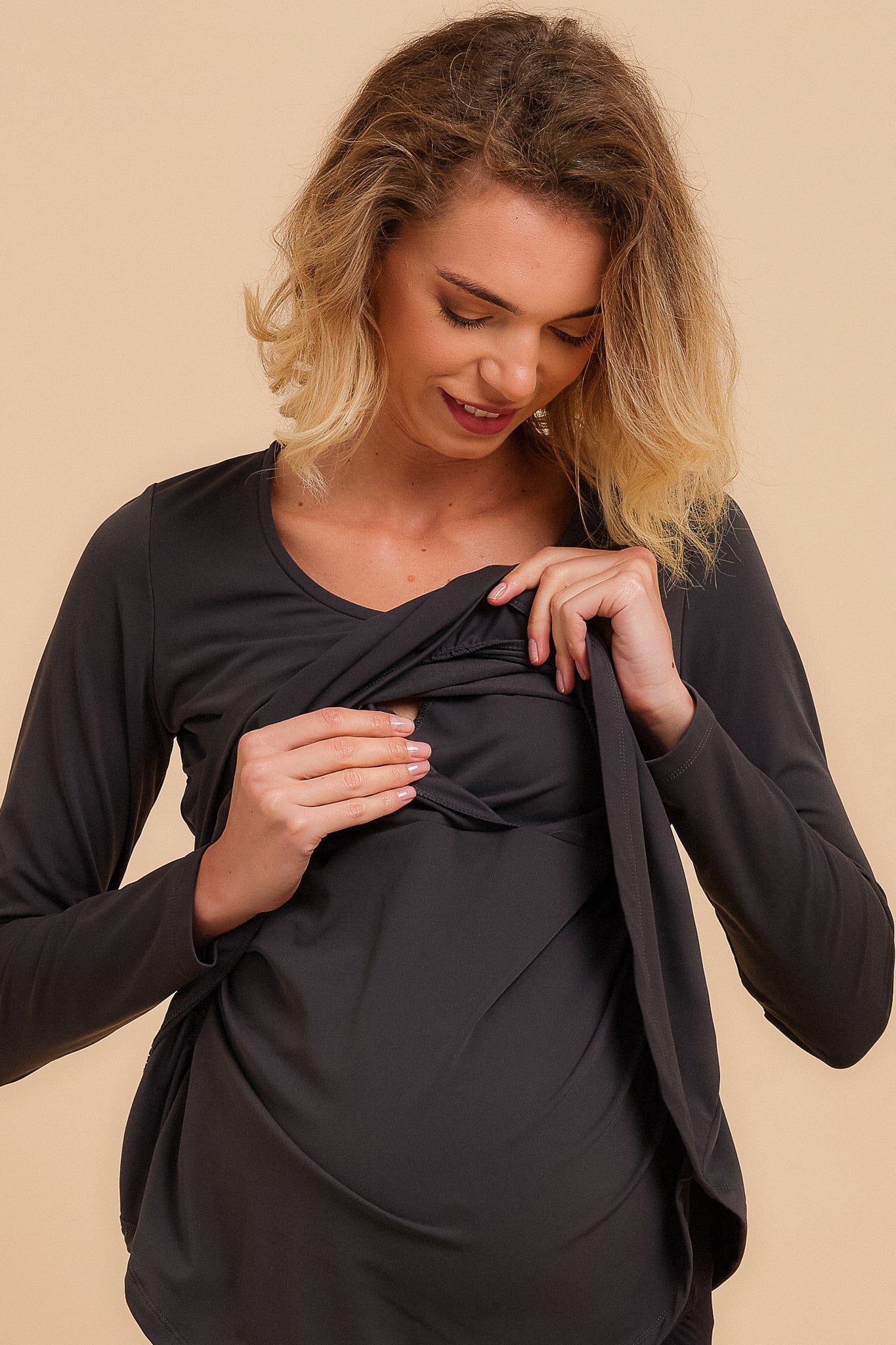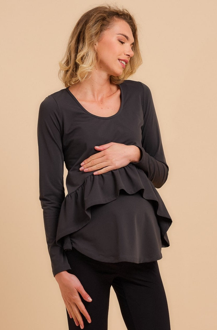 Μπλούζα εγκυμοσύνης και θηλασμού σε σκούρο γκρι χρώμα