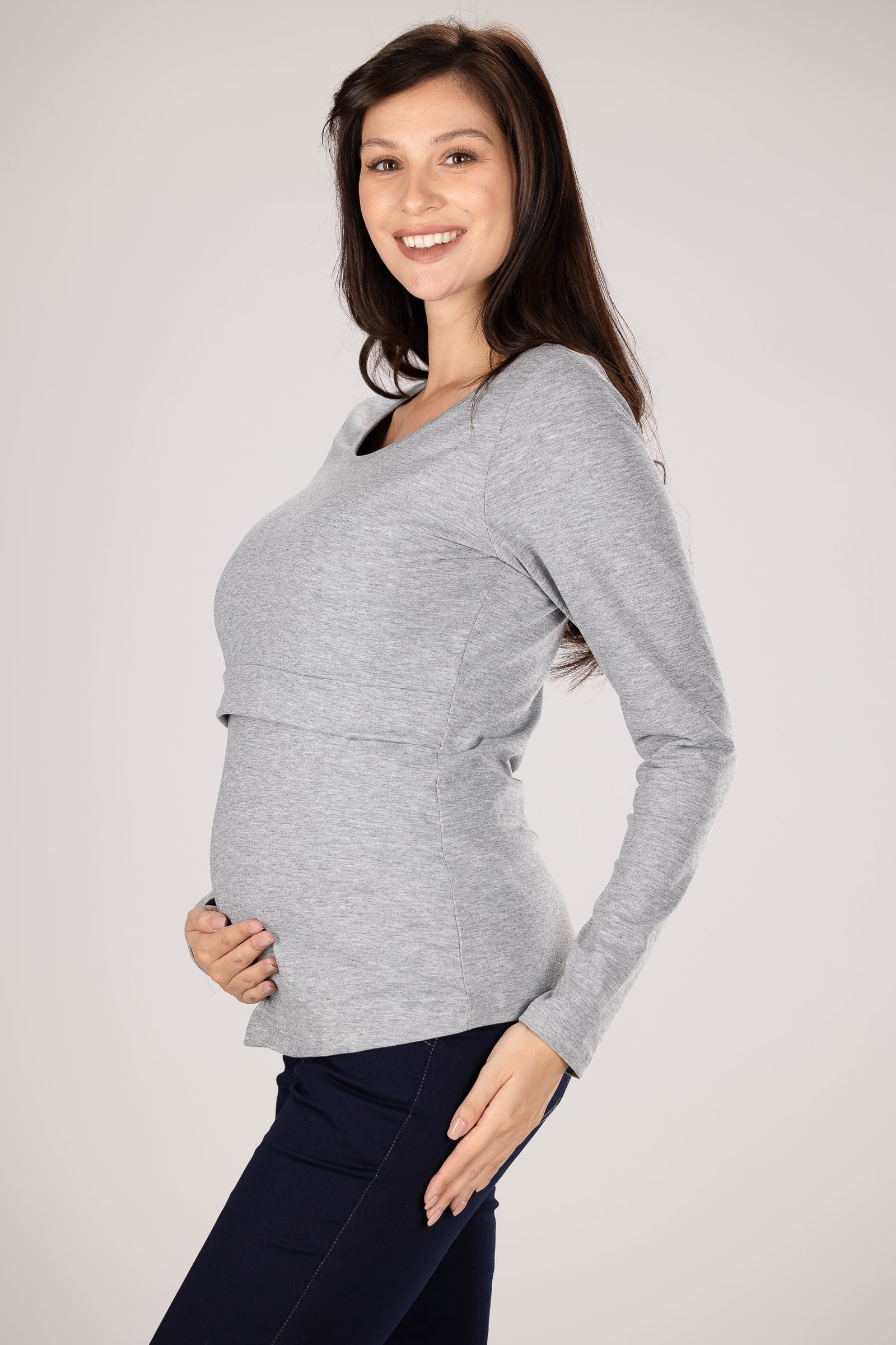 Μπλούζα εγκυμοσύνης και θηλασμού σε γκρι χρώμα