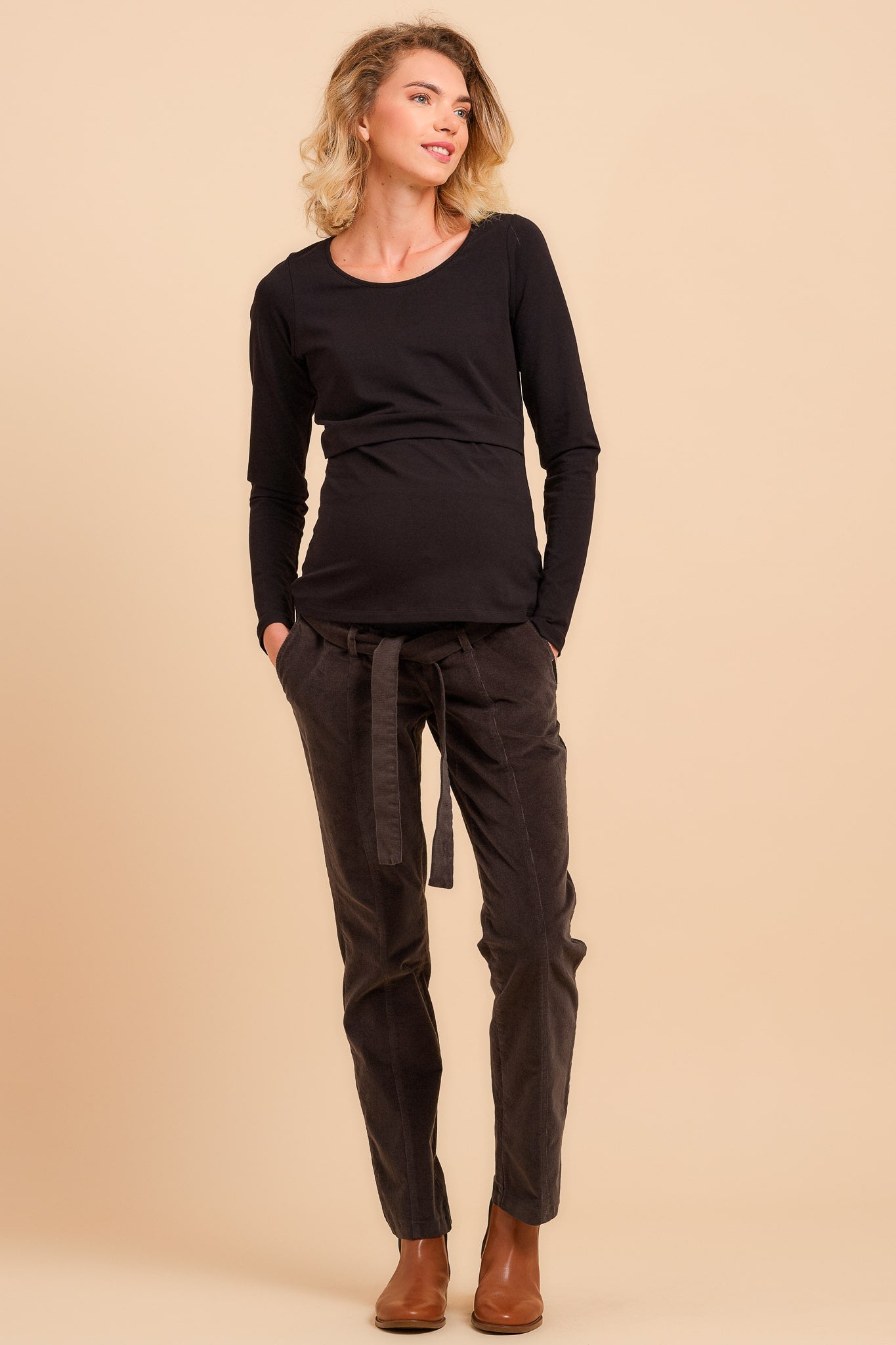 • Το παντελόνι για εγκύους είναι φτιαγμένο από βαμβακερό κορδόνι σε χρώμα χακί