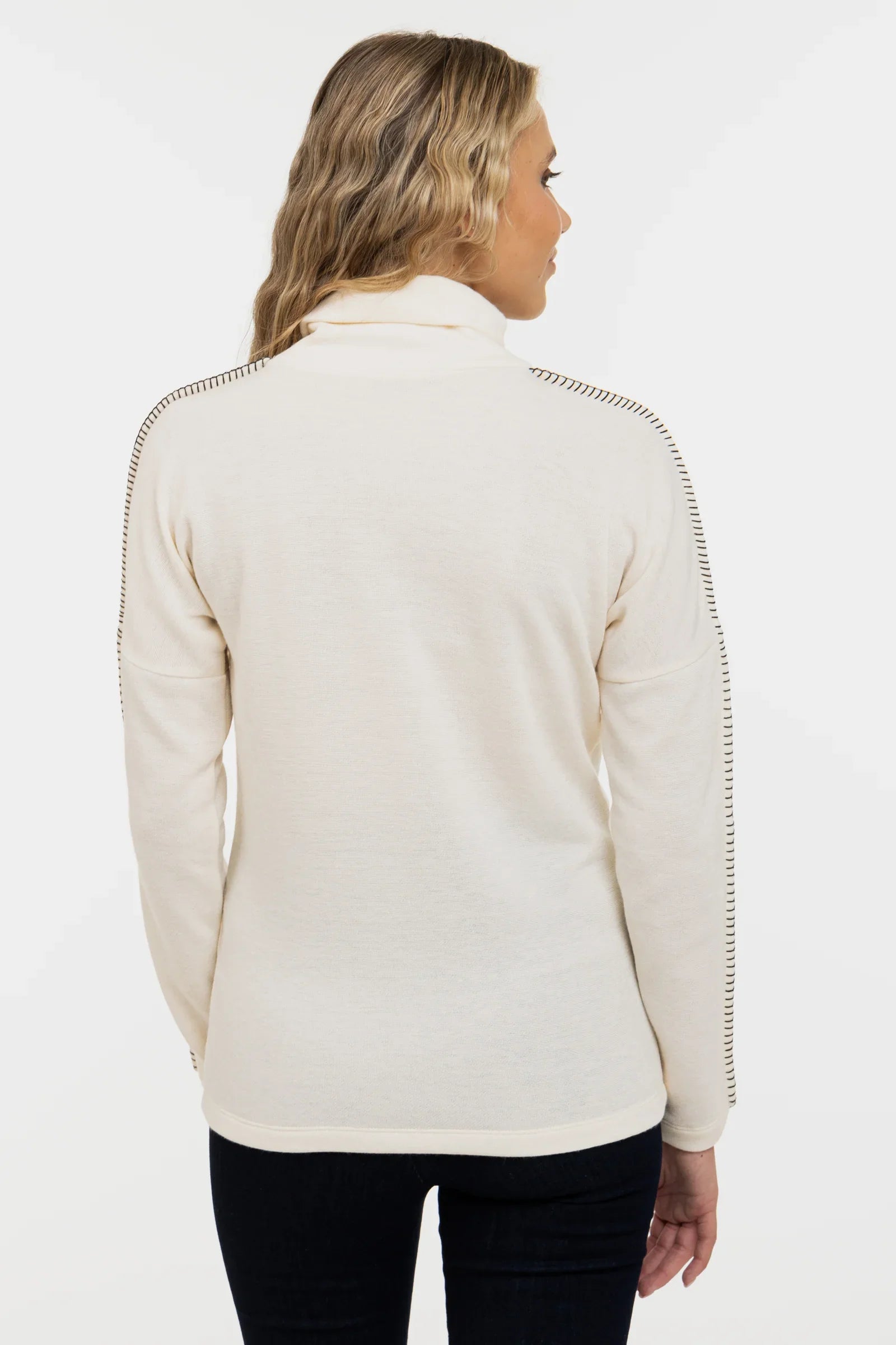 Πλεκτό εκρού πουλόβερ εγκυμοσύνης με διακοσμητικές ραφές