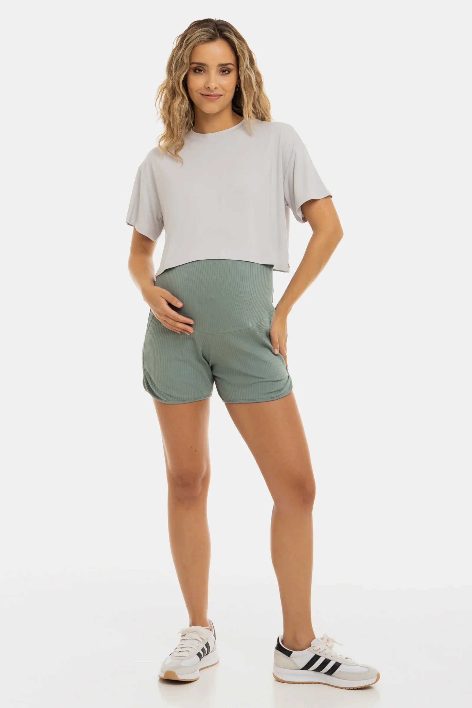 Σούπερ άνετο σορτσάκι εγκυμοσύνης από βαμβακερό ριπ ύφασμα, ιδανικό για το σπίτι ή για βόλτες έξω.