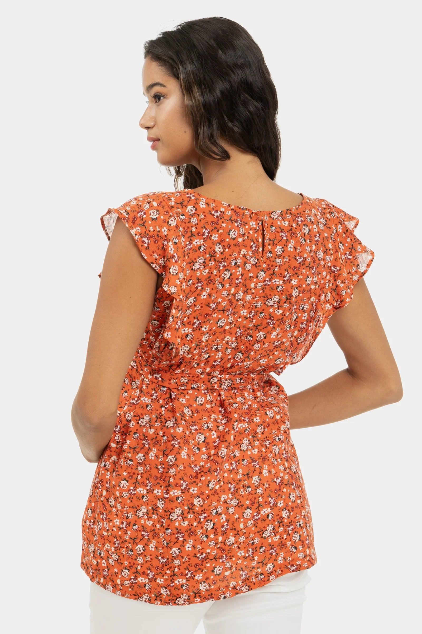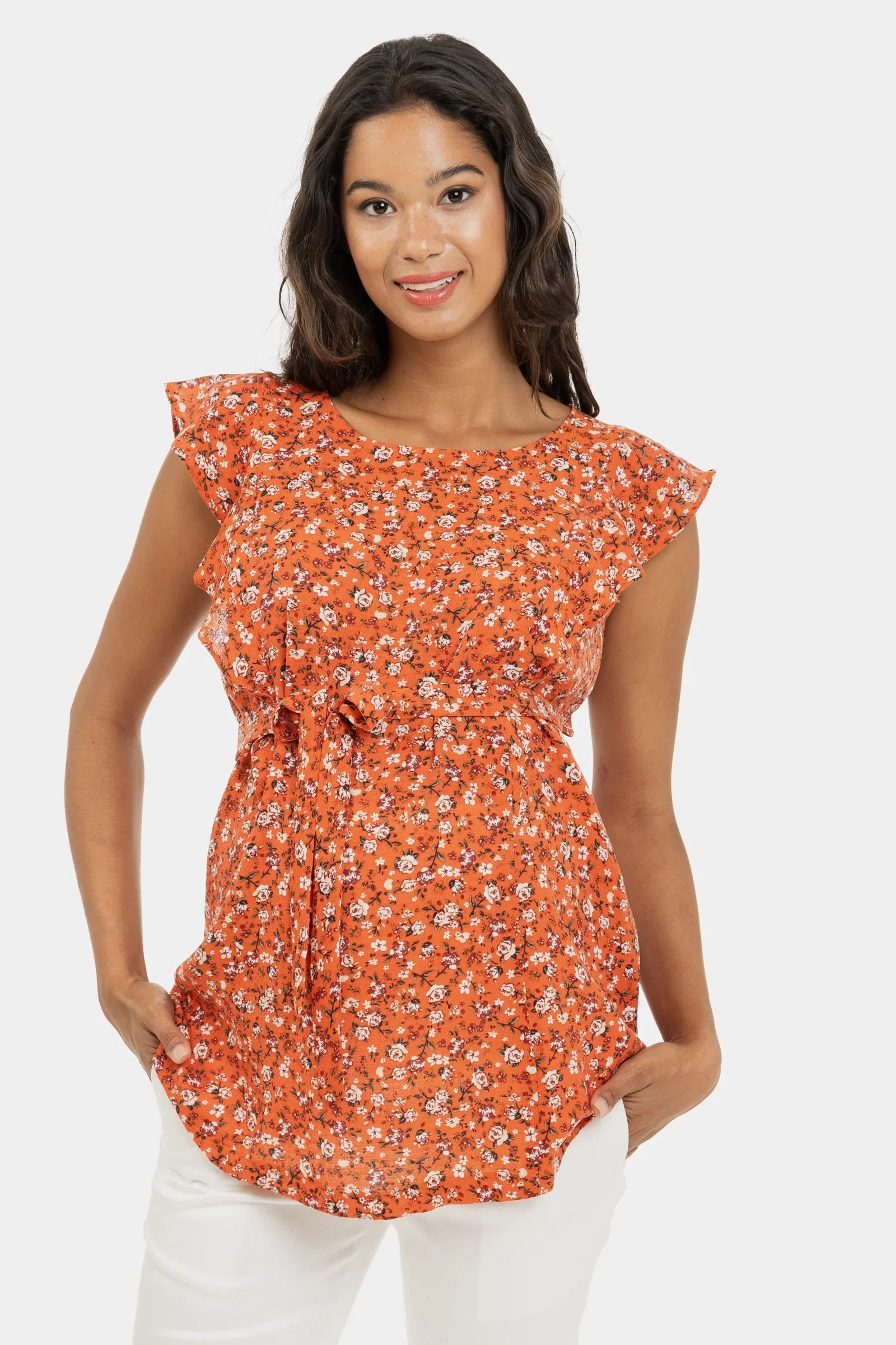 Πολύχρωμο τοπ εγκυμοσύνης και θηλασμού με μανίκια με βολάν